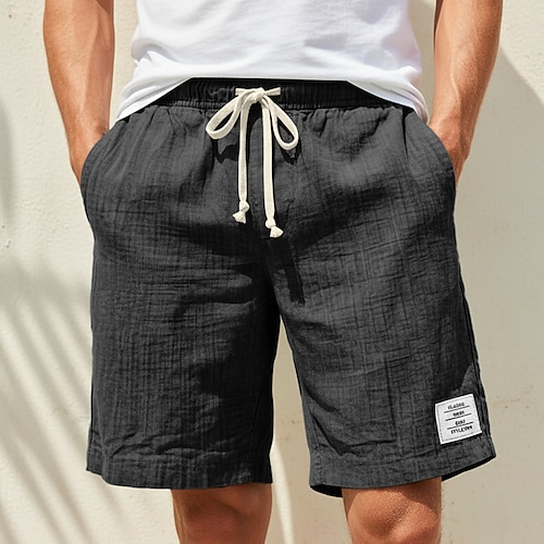 Herren Baumwolle Leinen Freizeithose Sommershorts Täglich Strand Urlaub Stilvoll Leicht Himmelblau Salbei Beige Sommer Hosen Einfarbig Figurbetonter Schnitt Kurz Unelastisch