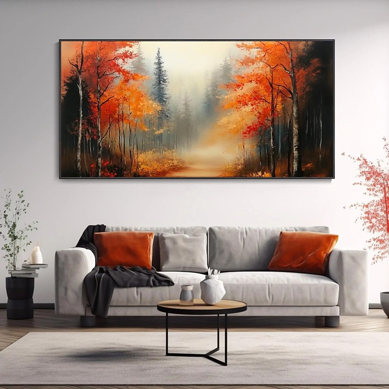 Handmade Oil Painting Canvas Wall Art Decoration Modern Abstract Orange Maple Forest Landscape for Living Room Home Decor Stretched Frame Hanging Painting /No Frame