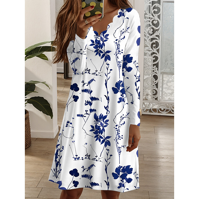 Women's Mini Dress Floral Dress Print Dress Fashion Modern Daily Vacation Going out Regular Fit Floral Long Sleeve V Neck Blue White Summer Spring
