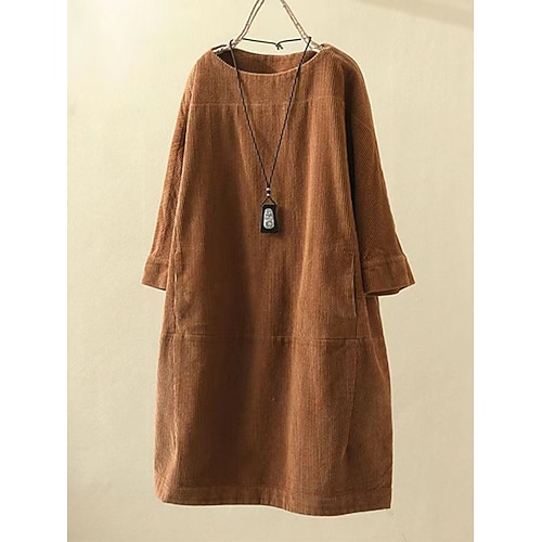 Per donna Mini Abito Abito a Tubino Casual Quotidiano Vestibilità regolare Semplice Manica 3/4 Scollo a V Blu Cammello Verde Primavera Autunno
