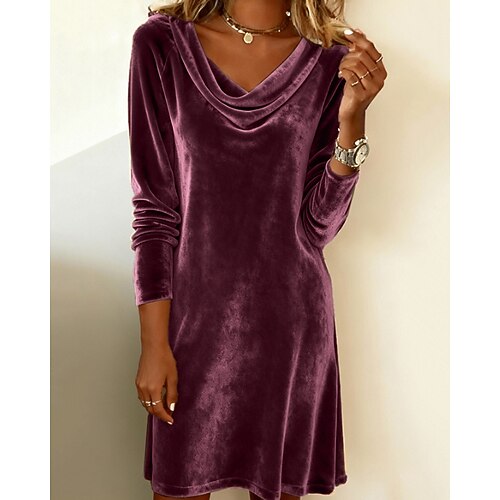 Abito Mini in Velluto per Donna Abito A Fascia Elegante Festa Cocktail Festa Matrimonio Ospite di Matrimonio Vestibilità Regolare Colore Unito Maniche Lunghe Collo a Cowl Nera Vino Rossa Verde
