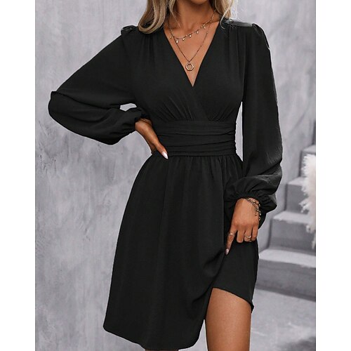 Per donna Mini Abito Vestito Casual Abito arricciato Moderno Quotidiano Uscire Weekend Vestibilità regolare Semplice Manica Lunga Scollo a V Nero Vino Verde militare Blu marino Primavera Autunno