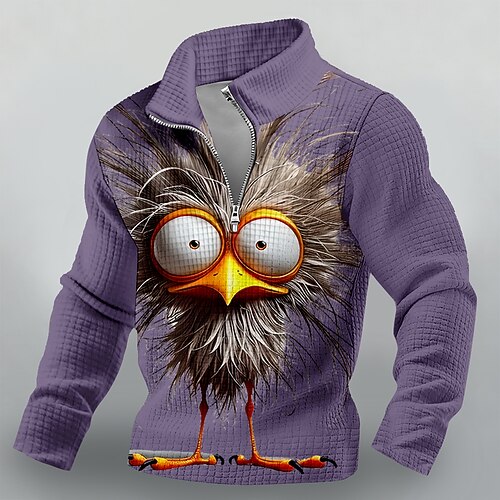 Felpa da uomo con cerniera a un quarto, stampa di uccelli con grandi occhi divertenti in 3D, pullover a nido d'ape, manica lunga, casual, novità, felpe grafiche, abbigliamento, abbigliamento S M L XL