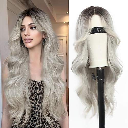 Parrucca Sintetica Riccio Riga centrale Fatto a macchina Parrucca Lungo Marrone scuro Nero Naturale Marrone Ombre Grey Ombre Blonde Capelli Sintetici Per donna Morbido Moda Facile da trasportare