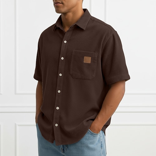 Per uomo Camicia Tessuto Camicia casual Camicia di Velluto a Coste Camicia con Bottoni Nero Verde chiaro Rosa Borgogna Blu marino Manica Corta Semplice Colletto a Camicia Casuale Quotidiano Tasca