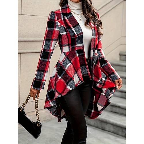 Per donna Giacca Invernale Confortevole Traspirante Stampato Aperturaanteriore Casual Plaid Vacanza Streetwear Casuale Abbigliamento quotidiano Aperto davanti Lungo Scollo a V Vestibilità regolare