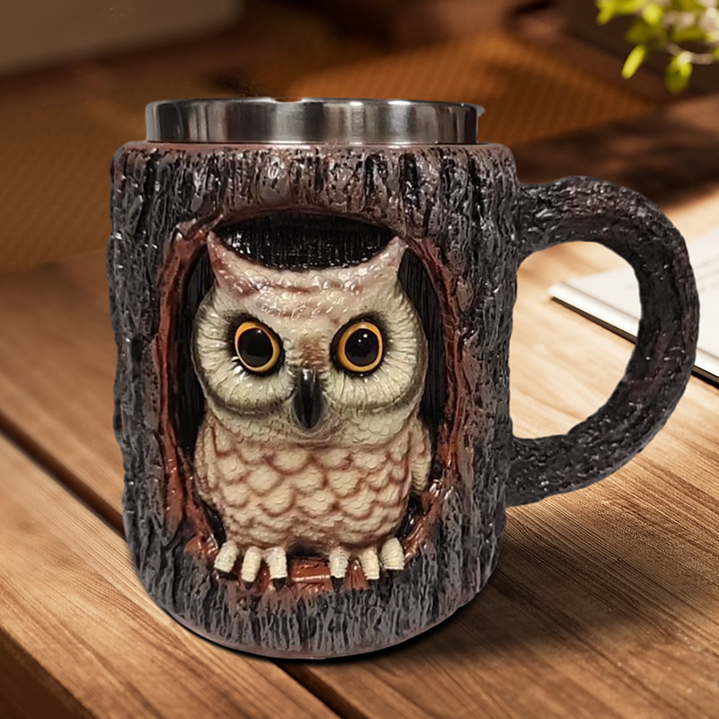Handmade-Raccoon Tree Hollow Mug, 3D Animal Resin Coffee Cup, Creative Forest Tree Stump Design Mug, Cute Woodland Raccoon Gift Cup for Home Office, Unique Decorative Drinkware for Nature Lovers and C