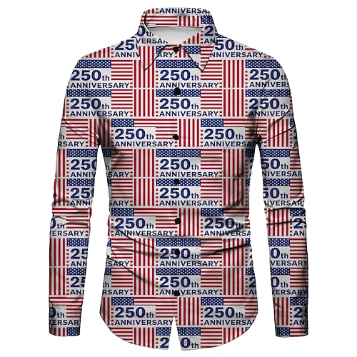 American 250 Retro Vintage 1970er Hemd Aloha-Hemd langarm Hippie Geometrisch Ethnisch Kostüm Herren Maskerade 4. Juli Party Unabhängigkeitstag Fünfhundertjahrfeier Erwachsene Hemd