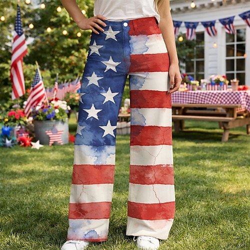 American 250 Retro Vintage 1970er Hose Hose mit weitem Bein Hippie Disco Hohe Taille Kostüm Damen Maskerade 4. Juli Unabhängigkeitstag Fünfhundertjahrfeier Erwachsene Hose