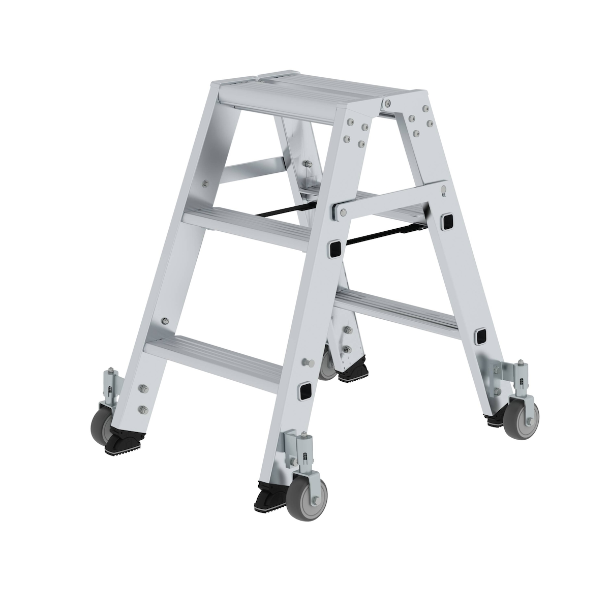 PROREGAL Stufen-Stehleiter beidseitig begehbar mit Rollen 2x3 Stufen