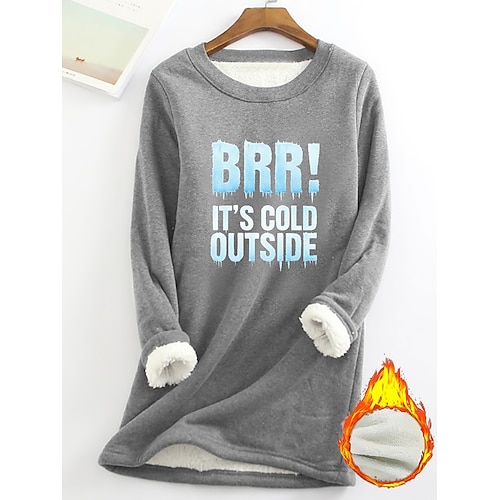 Damen Sweatshirt-Pyjama mit Fleecefutter Pullover Sweatshirt Pullover Sweatshirts Buchstabe Warm Streetwear Lässig Langarm Rundhalsausschnitt Lange Oberteile Heim Alltagskleidung Lässig Druck Schwarz