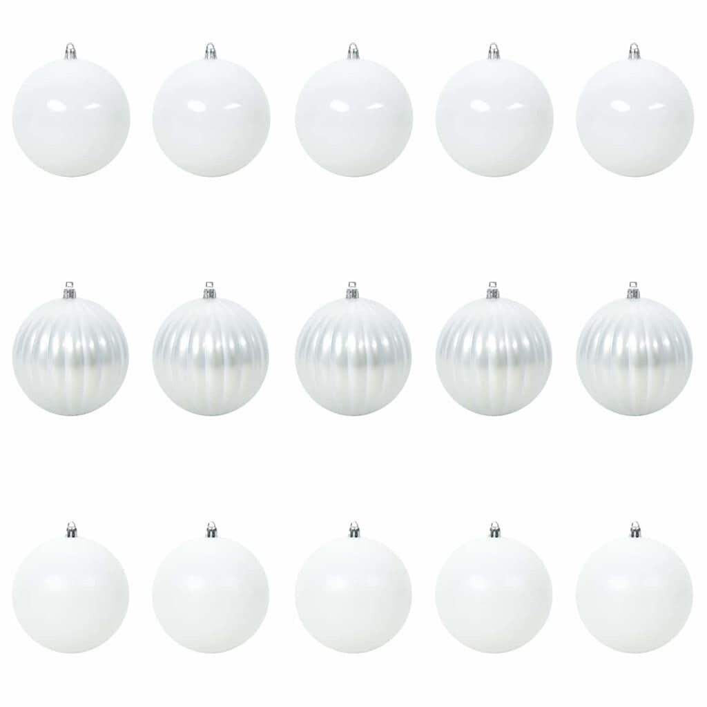 vidaXL Weihnachtskugel-Set 15 pcs Weiß Kunststoff