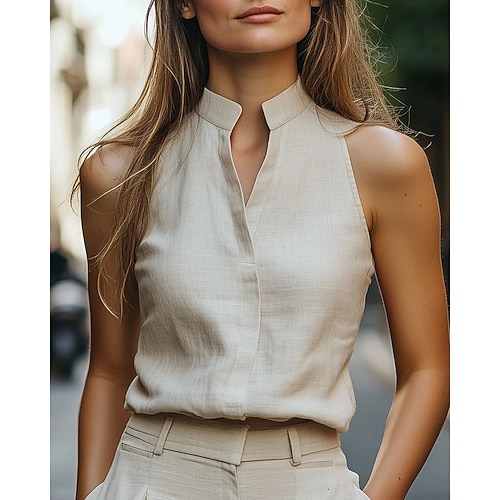 Per donna Blusa Semplice Elegante Senza Maniche Collo Alto Top Regolari Quotidiano Ferie Uscire Patchwork Blu Rosa Verde Cachi Estate Primavera