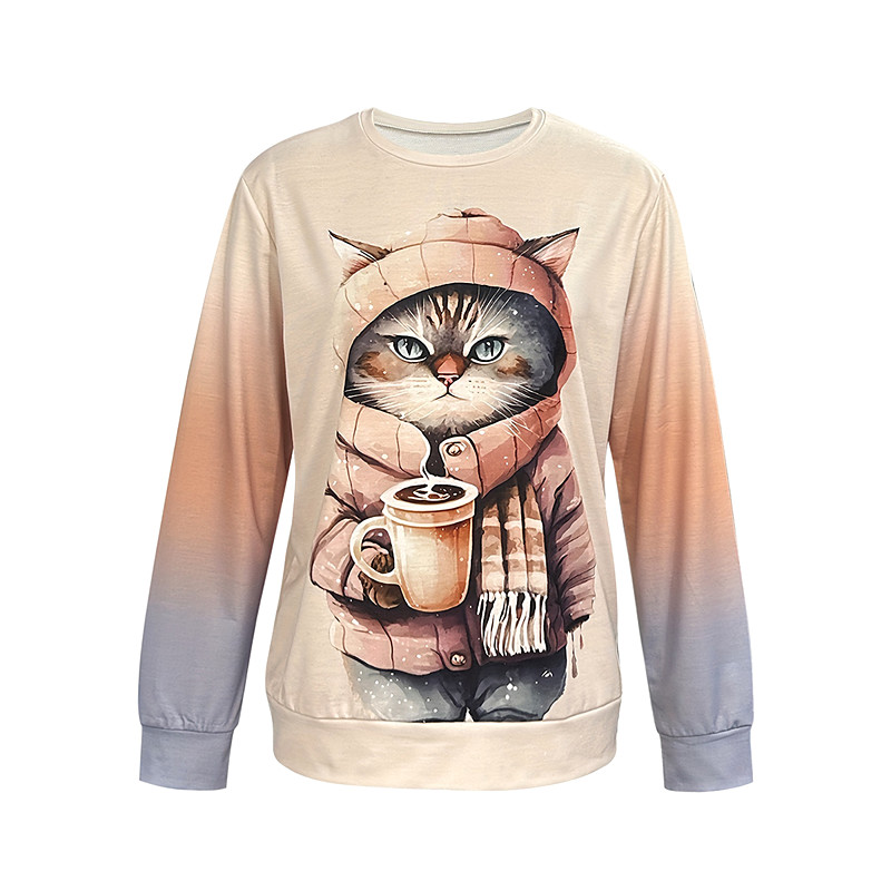 Women's Pullover Sweatshirt Graphic Animal Cat Warm Active Vintage Long Sleeve Crew Neck Regular Tops Casual Street Dailywear Patchwork Print Khaki Gray Spring Fall Winter