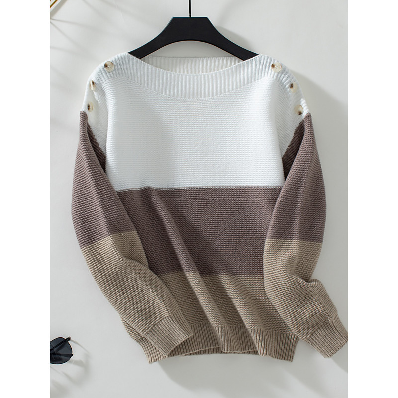 Women's Sweater Casual Soft Striped Ribbed Crew Neck Knitted Textured Long Sleeve Regular Tops Knit Outdoor Daily Weekend Purple Brown Fall Winter
