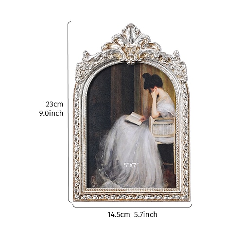 cornice decorativa vintage in pizzo ad arco oro/argento, decorazione da tavolo antica in stile europeo, perfetta per esporre foto, decorare la casa e come accessorio per la fotografia