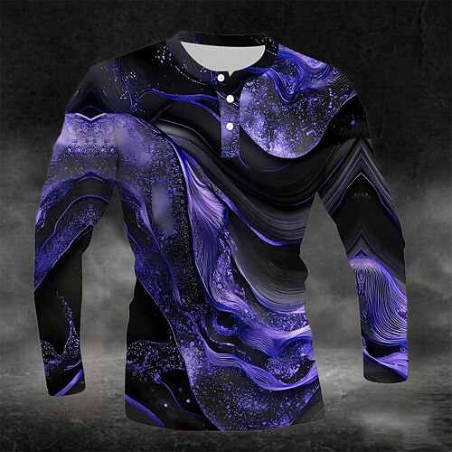 Per uomo Astratto Modello in marmo Maglia Henley Manica Lunga Moda Carino Quotidiano Casuale Ferie Uscire Primavera Autunno Tutte le stagioni Blu marina Nero Blu Giallo Verde Henley Maglietta Henley