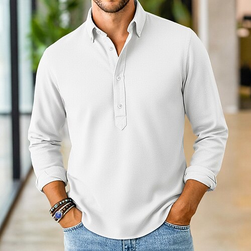 Herren Henley Shirt Tee langarmshirt Glatt Henley Casual Festtage Langarm Button-Down Bekleidung Baumwollmischung Modisch Designer Komfortabel Essential