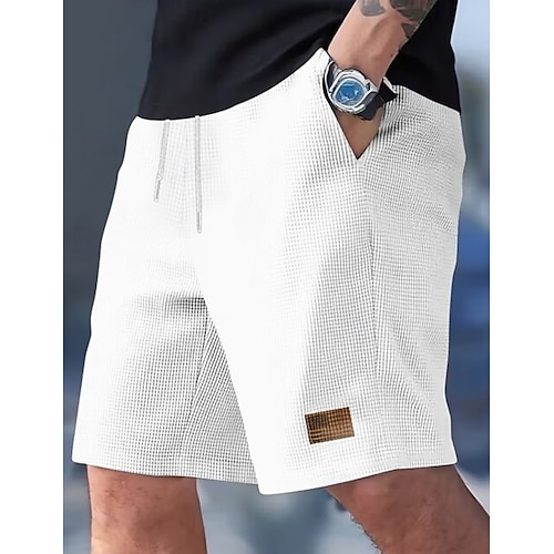 Herren Waffel-Shorts Shorts Freizeitshorts Kordelzug Tasche Elastischer Bund Einfach Komfort Atmungsaktiv Kurz Lässig Outdoor Strand Urlaub Streetwear Schwarz Weiß Mikroelastisch