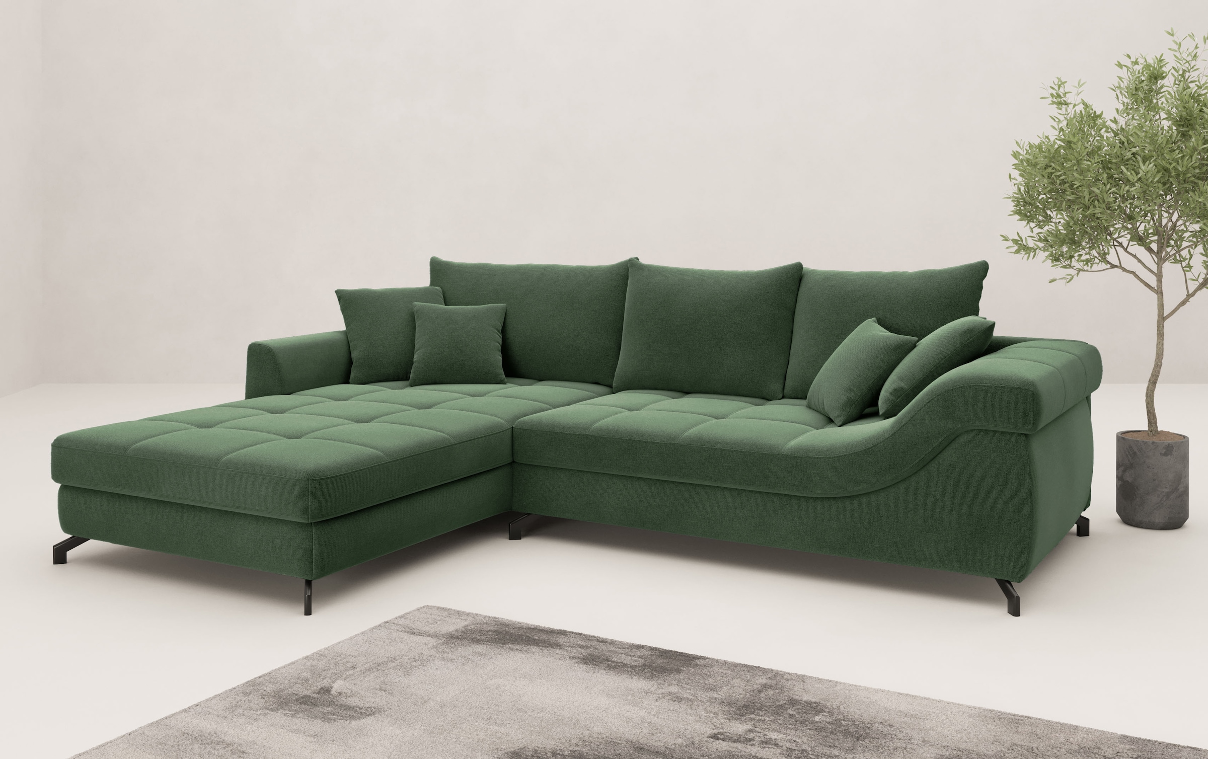 Ecksofa MR. COUCH "Taylor, L-Form, wahlweise mit Kaltschaum", miami 12 grün, B:317cm H:93cm T:226cm, 90% Polyester / 10% Nylon, Sofas, wahlweise mit Kaltschaum bis 140 kg pro Sitzplatz belastbar