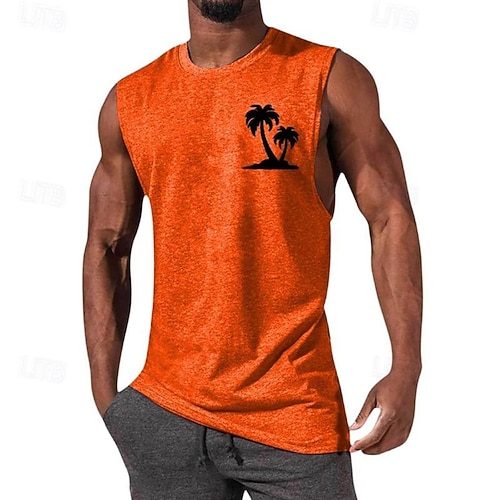Herren Tank Top Weste Unterhemd Ärmelloses Shirt Ärmellos Rundhalsausschnitt Sommer Kokospalme Mode Designer Basic Druck Urlaub Straße Ausgehen Schwarz Weiß Marineblau Top T-Shirt für Herren