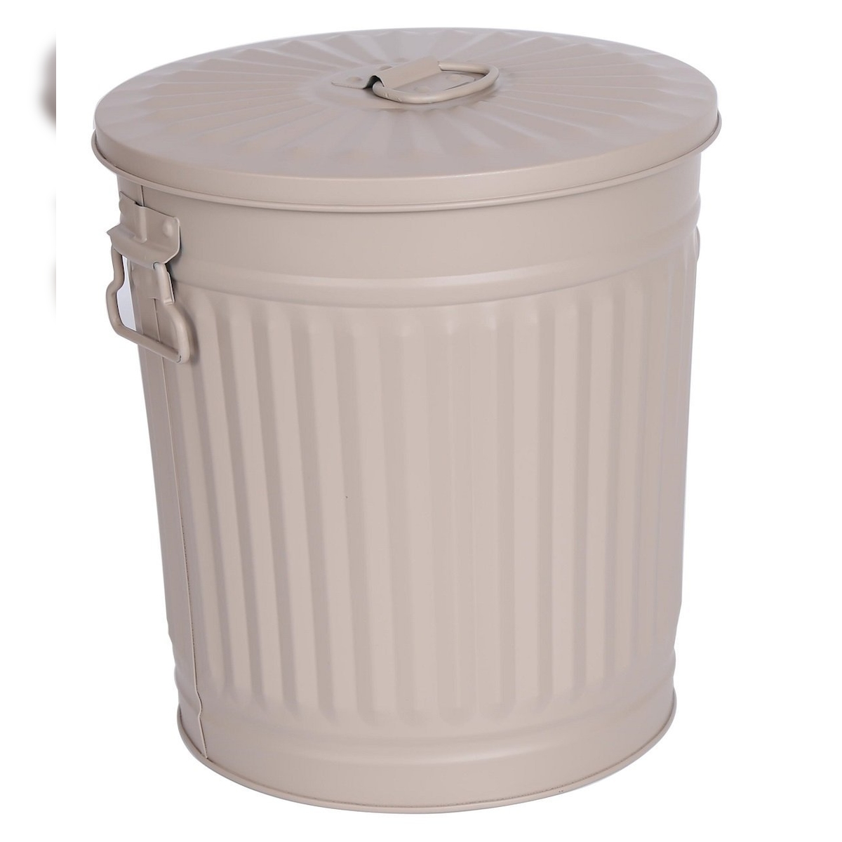 H&D Manufaktur Jinfa Mülleimer mit Deckel, Ascheeimer, Abfallbehälter, Mülltonne, Papierkorb aus Metal|, Beige, Ø 21,5 cm, Höhe 21,5 cm 7 Liter