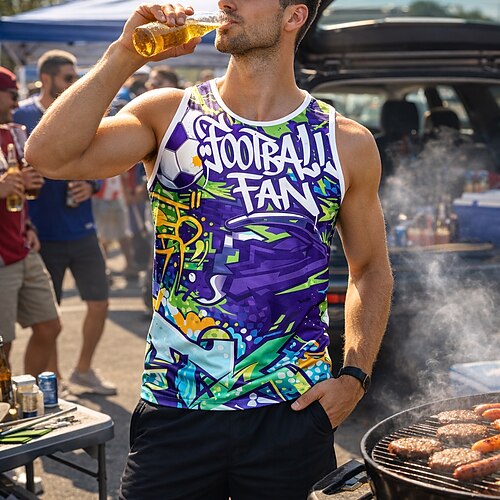 Herren Fußballtrikot Geometrisch Buchstabe Workout-Tanktop Lauf-Tanktop Sport-T-Shirt Sommer Ärmellos UPF 50 Schnelltrocknend Feuchtigkeitsableitend Atmungsaktiv Turnier Fußball Leger Laufen Joggen
