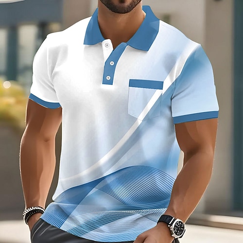 Herren Geometrisch Golf Poloshirts Kurzarm Polo-Shirts Revers Lässig Athleisure Alltagskleidung 3D-Druck Knöpfe Sommer Frühling Blau Weiß Rote