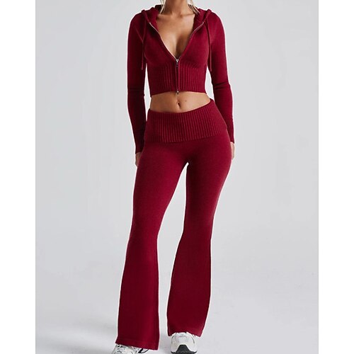 Per donna Attivo Streetwear Set di Pantaloni Bolero Top Manica Lunga Con Cappuccio Semplice All'aperto Vacanza Quotidiano Nero Rosa Vino Autunno Vestibilità regolare