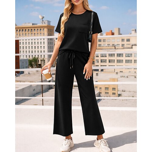 Per donna Set di tute e pullover Tuta da 2 pezzi Abiti da salotto Coulisse con tasca Tinta unita Set di Abbigliamento Sportivo Estate Primavera Nero Blu marino Allenamento in Palestra Jogging Corsa