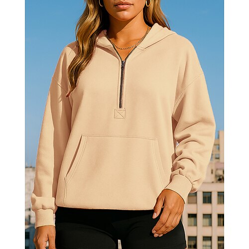 Per donna Felpa casual Felpa con cappuccio Cerniera a un quarto Manica Lunga Top Athleisure Autunno Tinta unita Di tendenza All'aperto Viaggio abbigliamento sportivo Abbigliamento sportivo Nero Verde