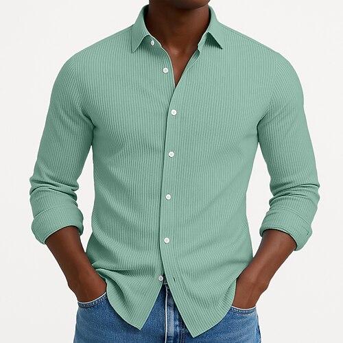 Per uomo Camicia Camicia di Velluto a Coste Camicia con Bottoni Blu Nero Bianco Blu marino Viola Manica Lunga Semplice Collo ripiegato Casuale Quotidiano Bottonato Abbigliamento Cotone Moda