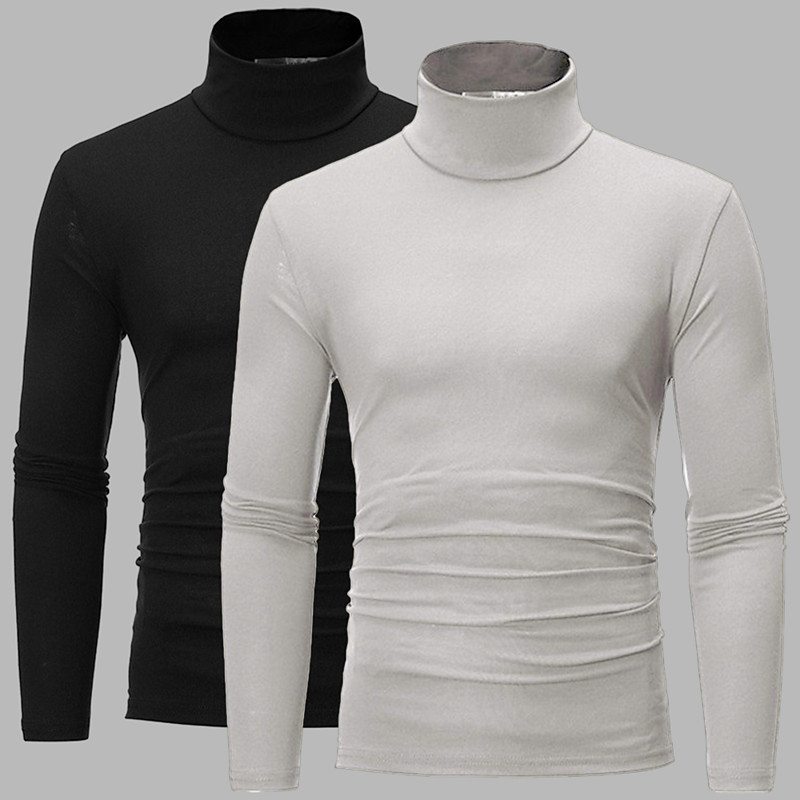 2Pcs Men's Turtleneck T Shirt Long Sleeve Shirt Long Sleeve Turtleneck Rolled collar Fall Fall Winter Plain Lightweight Basic Classic 2 Piece Outdoor Casual Sports Tee