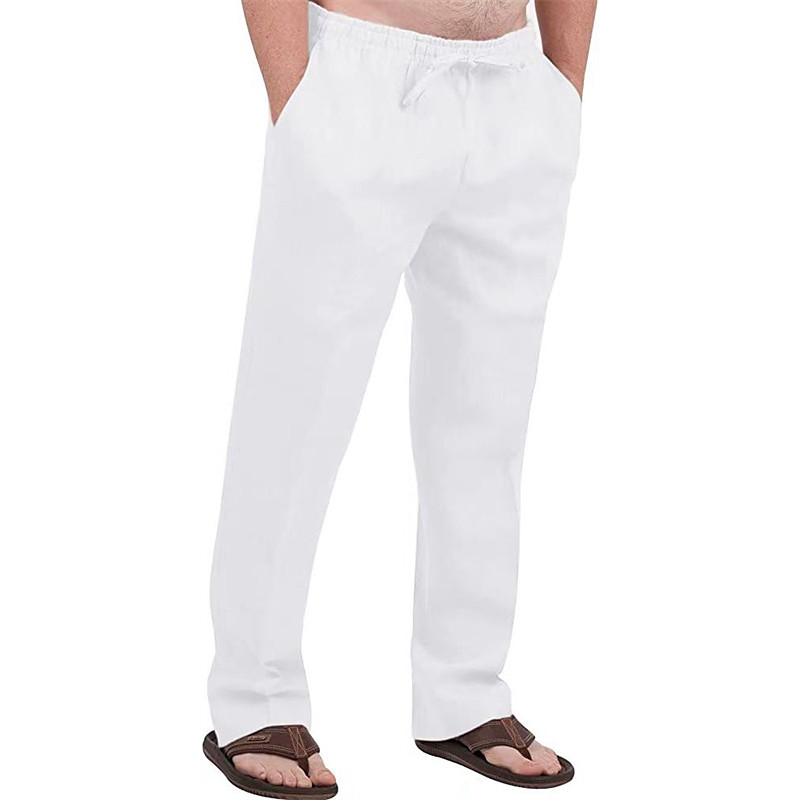 Men's Cotton Pants Trousers Beach Pants Casual Pants Pocket Drawstring Elastic Waist Plain Comfort Breathable Vacation Daily Holiday Hawaiian Boho Black White