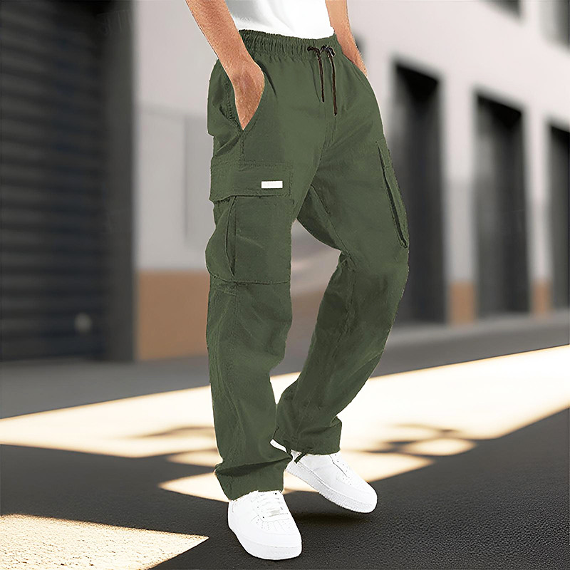 Men's Cargo Pants Cargo Trousers Trousers Leg Drawstring 6 Pocket Plain Comfort Outdoor Daily Going out Fashion Streetwear Grass Green Black