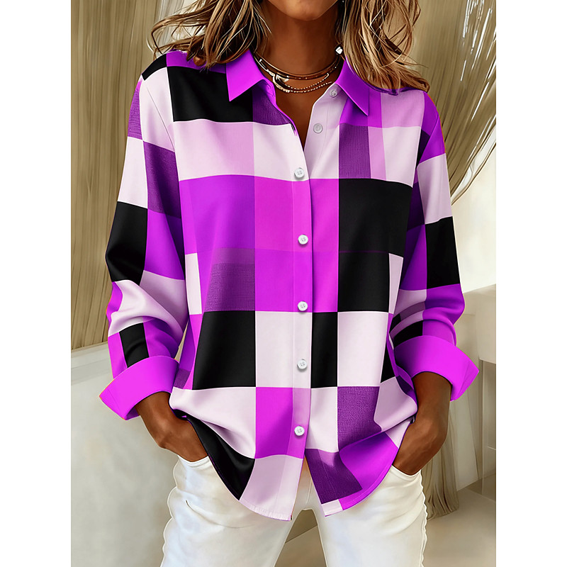 Women's Shirt Graphic Plaid Color Block Vintage Daily Stylish Long Sleeve Shirt Collar Regular Tops Daily Patchwork Buttons Print Blue Purple Orange Green Fall Winter