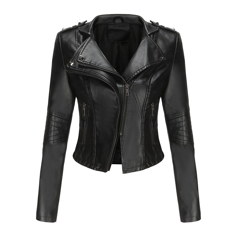 Women's Faux Leather Jacket Biker Jacket Comfortable Pocket Full Zip Fashion Street Style Plain Outdoor Casual Daily Short Turndown Regular Fit Long Sleeve Outerwear Black Pink Burgundy Spring Fall
