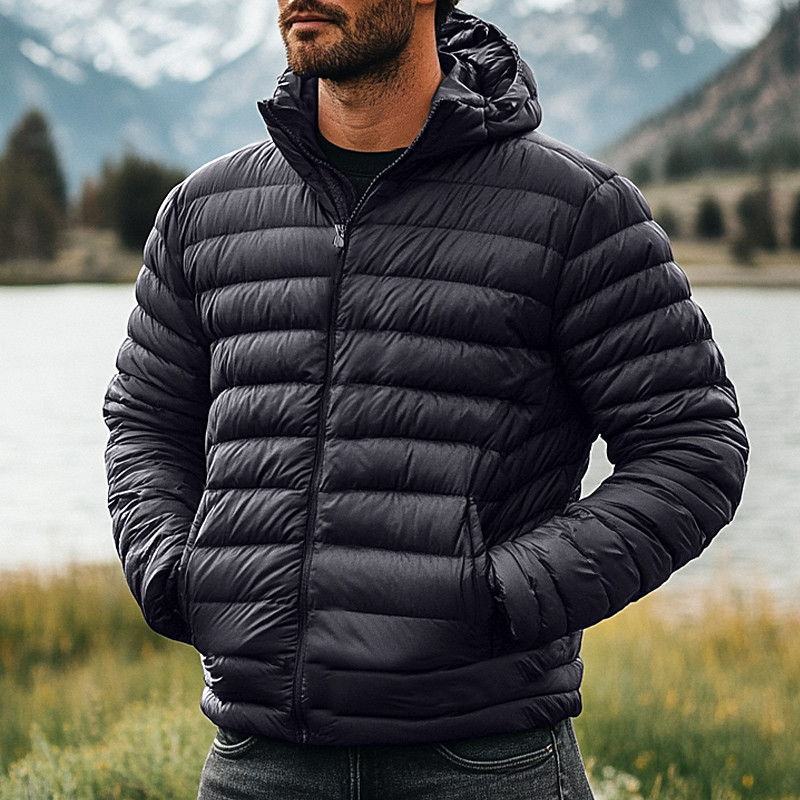 Men's Winter Coat Down Jacket Puffer Jacket Zipper Pocket Outdoor Home Work Regular Classic Thermal Warm Windproof Breathable Winter Autumn / Fall Solid Color Wine Matte Black Royal Blue Blue Puffer