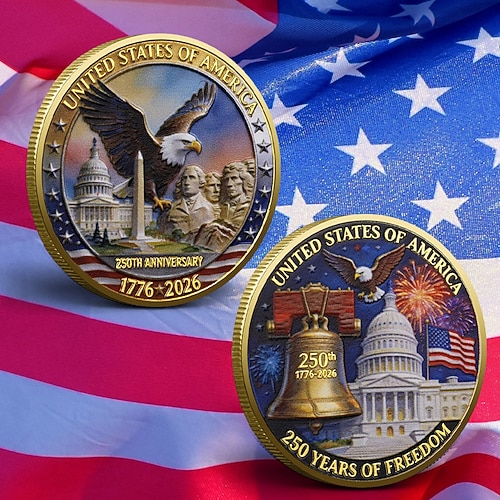 Moneta commemorativa del 250° anniversario degli Stati Uniti, medaglia patriottica 1776-2026 con aquila calva, Monte Rushmore e Campana della Libertà. fuochi d'artificio, oggetto da collezione