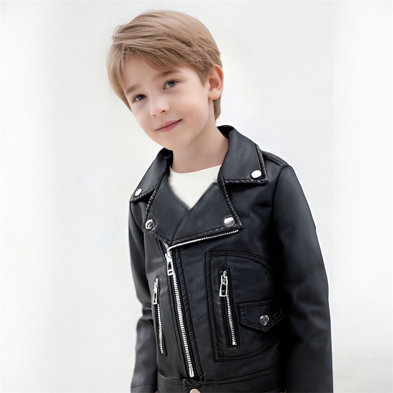 Kid's Boys' Black Leather Jacket Jacket Outerwear Plain Long Sleeve Zip Up Waterproof Windproof Coat Daily Fashion Casual Black Spring Fall 4 years