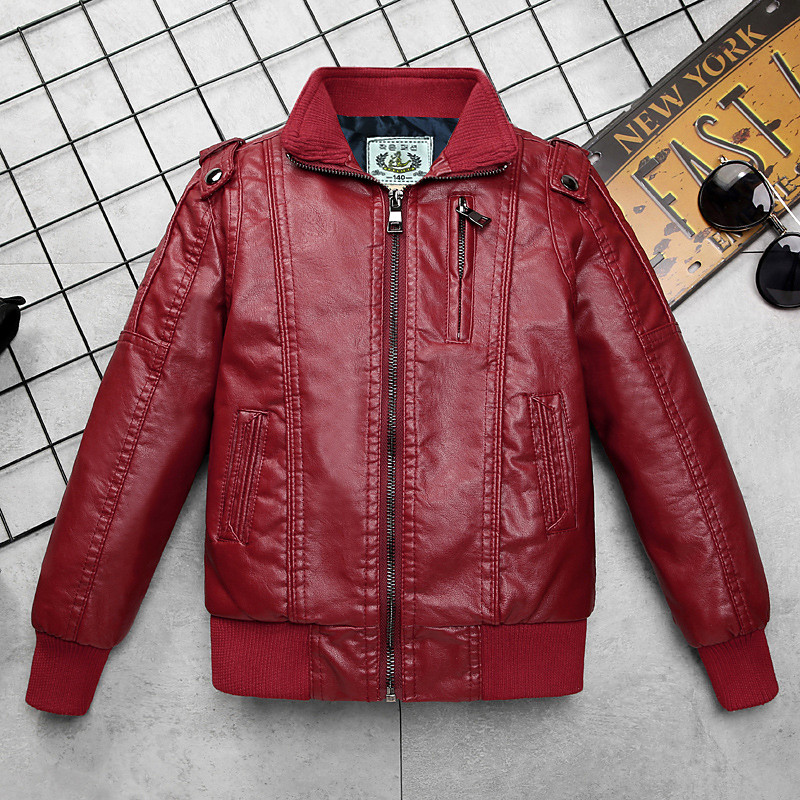 Kid's Boys' Black Leather Jacket Jacket Outerwear Plain Long Sleeve Zip Up Waterproof Windproof Coat Daily Fashion Casual Red Green Spring Fall 4-12 Years