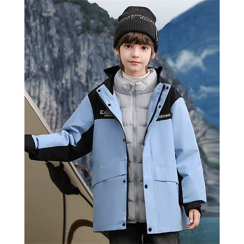 Kids Girls' Down Jacket Hiking Jacket Outdoor Jacket 3 in 1 Jacket Puffer Jacket Color Block Sports Pocket Waterproof Keep Warm Windproof Outdoor Coat Outerwear 5 years Winter Blue Black Pink