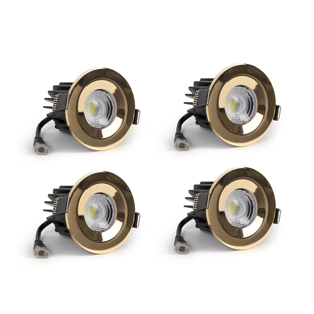 4 Pack - Soho Lighting Polished Brass LED Downlights - Fire Rated - Fixed - IP65 - CCT Switch - High CRI - Dimmable