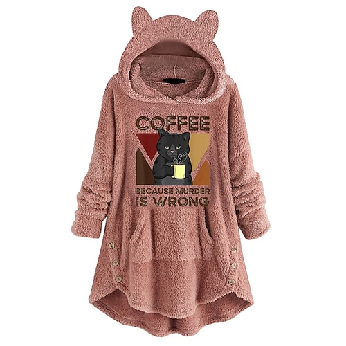 Per donna Felpa con cappuccio Geometrico Gatto Casual Manica Lunga Con Cappuccio Top corti Streetwear Abbigliamento Quotidiano Casuale Rosa Vino Rosa scuro Grigio scuro Grigio Autunno Inverno