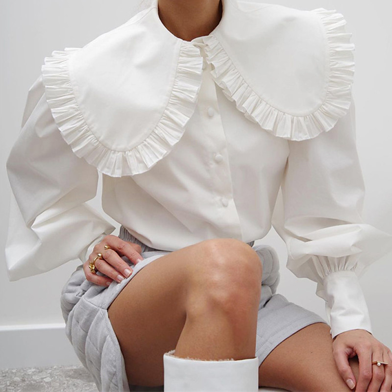 Women's Shirt Plain Daily Stylish Basic Long Sleeve Bishop Sleeve Shirt Collar Regular Tops Work Daily Holiday Buttons White Spring Fall