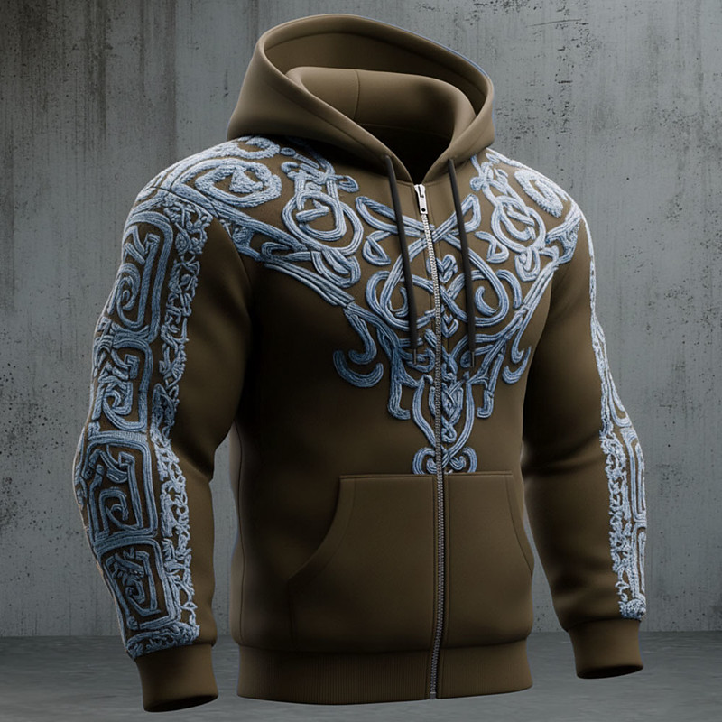 Herren Optische Täuschung Kelten Kapuzensweatshirt Jacke Pullover Vikinger 3D Fantasie Allover-Druck Langarm Reißverschluss Streetwear Urlaub Ausgehen Blau Braun Grün Grau Reißverschluss Herbst Winter