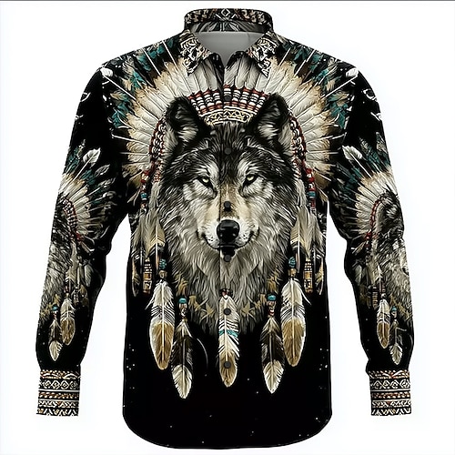 Per uomo Lupo Cacciatore di sogni Etnico Camicia Camicia con Bottoni Manica Lunga Vintage Retrò All'aperto Campeggio Escursionismo Caccia Primavera Autunno Collo ripiegato Stampa 3D camicie con