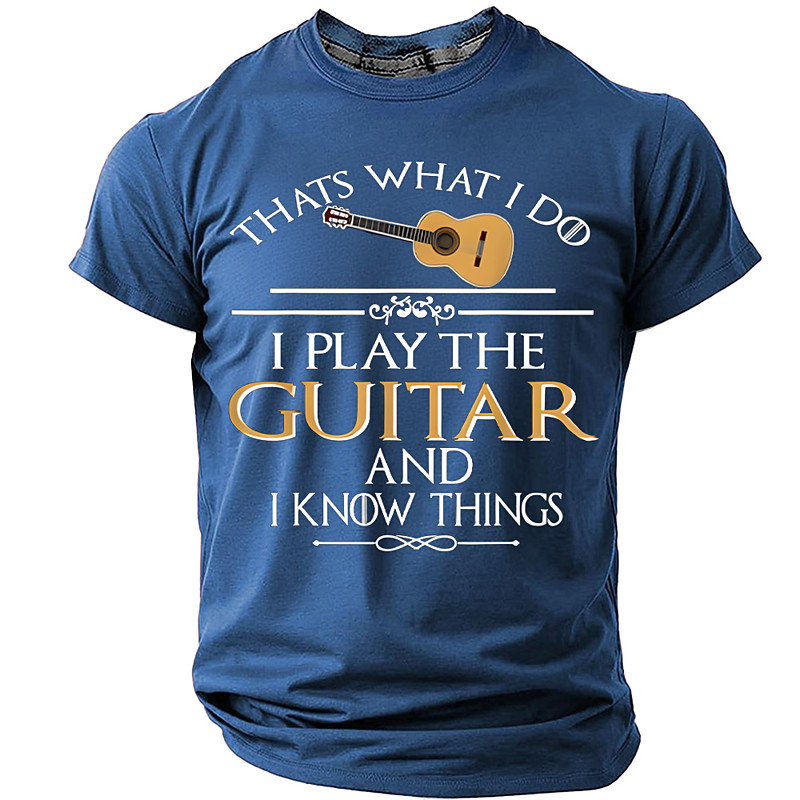 Thats What I Do I Play The Guitar And I Know Things Funny Slogan T-Shirt Mens Vintage Acoustic Guitarist Graphic Tee Humorous Musician Gift Tops Clothing Apparel S M L XL XXL XXXL
