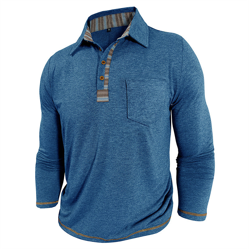 Men's Golf Shirt Golf Polos Shirts Work Casual Lapel Long Sleeve Basic Modern Color Block Patchwork Buttons Spring Fall Regular Fit Apricot Navy Blue Blue Green Light Grey Dark Gray Golf Shirt