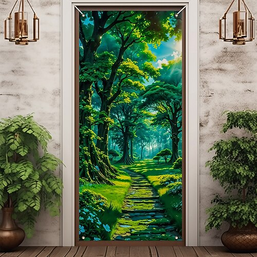 Poster Copertura della porta Banner per esterni 森林 Rustico 3D Da serata Dormitorio Stanza per adolescenti Dormitorio universitario Ragazzi Man Cave Frat Bedroom Sfondi di ripresa Arredamento per la